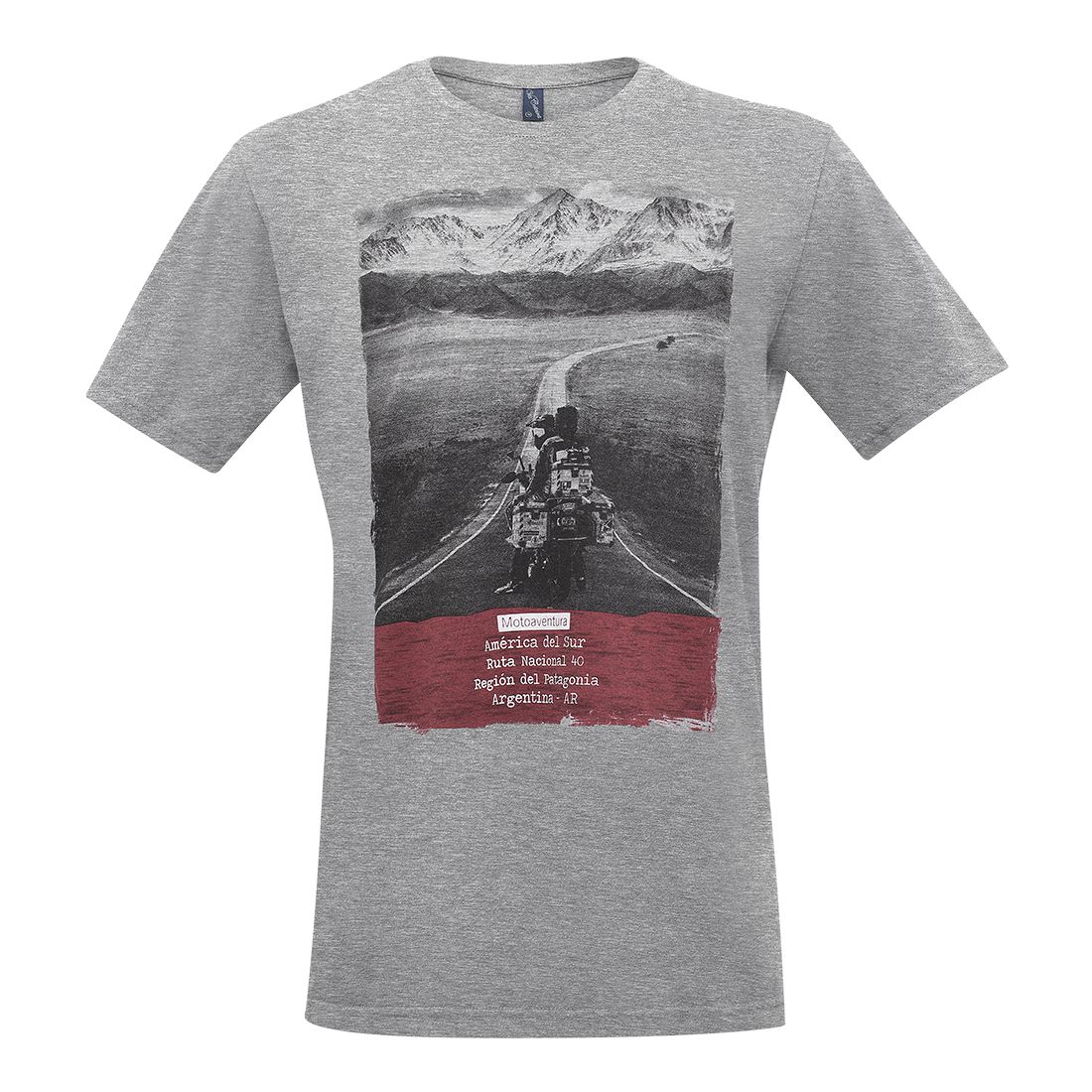 Camiseta em malha premium de algodão em tom de mescla com mangas curtas. Possui gola redonda, estampa frente expressando as paisagens únicas encontradas em especial na conhecida e desafiante Ruta 40 e já nas costas o mapa da América do Sul localizado na parte superior. Ótima para ser usada casualmente principalmente pelo seu conforto!